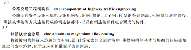1. 增加了公路交通工程鋼構件和鋅鋁鎂合金涂層的術語和定義(見3.1和3.8);